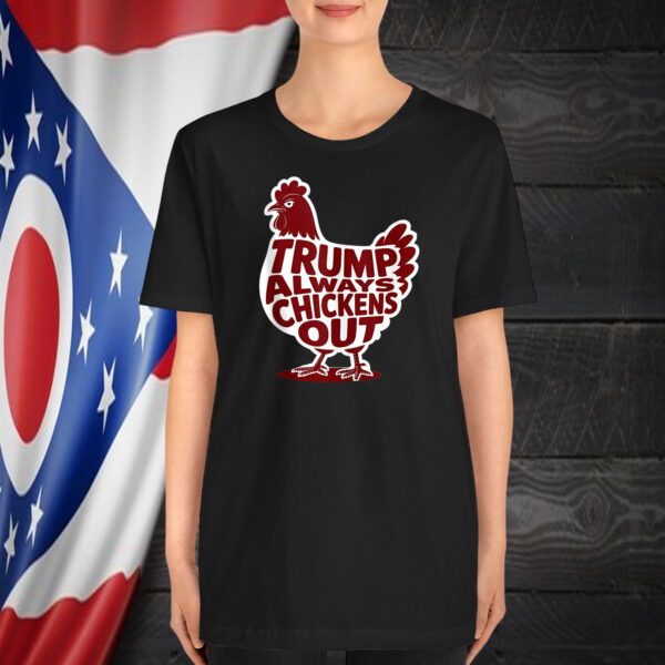 Whether you’re a political enthusiast looking to make a statement or simply someone who enjoys a good laugh, the Funny Trump Always Chickens Out Shirt is sure to bring a smile to your face. It’s the perfect gift for friends and family who share your sense of humor or a fun addition to your own collection of quirky tees.