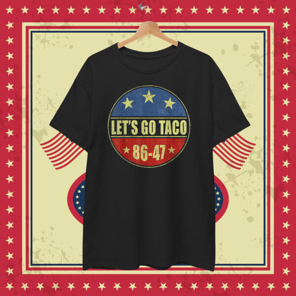 Introducing the Let’s Go Taco 86-47 2025 T-Shirt, a must-have addition to your wardrobe for all taco lovers out there! This stylish and comfortable t-shirt features a fun and vibrant design showcasing a delicious taco with the words “Let’s Go Taco” and “86-47 2025” printed on the front.